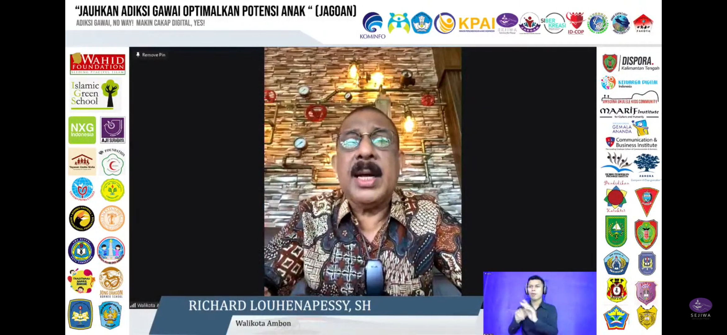 Diena Haryana, Pendiri Yayasan SEJIWA menyampaikan perlunya melibatkan sejumlah mitra dari berbagai wilayah di Indonesia, agar berbagai potensi daerah yang merupakan ‘success stories’ dapat menjadi pembelajaran bagi kita semua. “'Jauhkan Adiksi Gawai, Optimalkan Potensi Anak” (JAGOAN), ternyata sudah banyak dilakukan, baik di sekolah-sekolah maupun oleh para penggiat anak serta anak-anak sendiri, di Maluku dan hasilnya sangat luar biasa,” ujar Diena.
