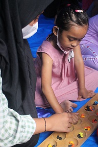 Dalam kegiatan tersebut, relawan TGR dan MRI bermain bersama 50 anak di Taman Baca RW 08 Kelurahan Kramat, Kramat Pulo, Jakarta Pusat mulai pukul 15.00-17.00 WIB. Kegiatan diawali dengan edukasi permainan tradisional, cerdas cermat, dan bernyanyi bersama. Kehadiran TGR dan MRI disambut antusias oleh anak-anak pengungsi, terbukti dengan tawa riang gembira yang mewarnai sepanjang kegiatan berlangsung.