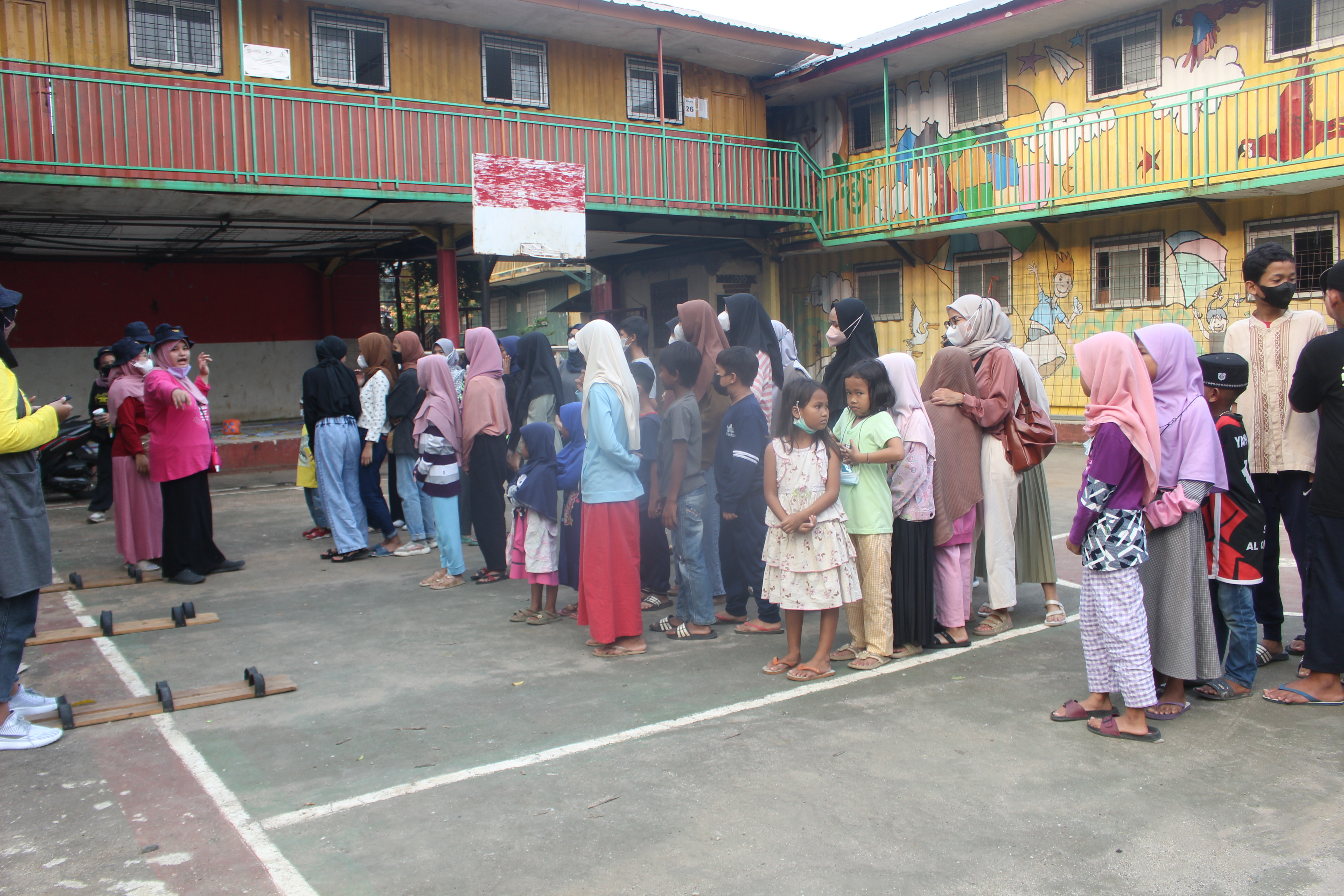 Depok, 17 April 2022 - Melanjutkan kegiatan kolaborasi dengan Komunitas Gerakan Suka Baca, pada hari kedua berlokasi di Sekolah Master Indonesia, Depok, Jawa Barat. Kegiatan dilaksanakan pada sore hari di pelataran sekolah. Meskipun dalam kondisi puasa, anak-anak tetap semangat menghabiskan waktu ngabuburit dengan bermain permainan tradisional yang jarang mereka mainkan.
