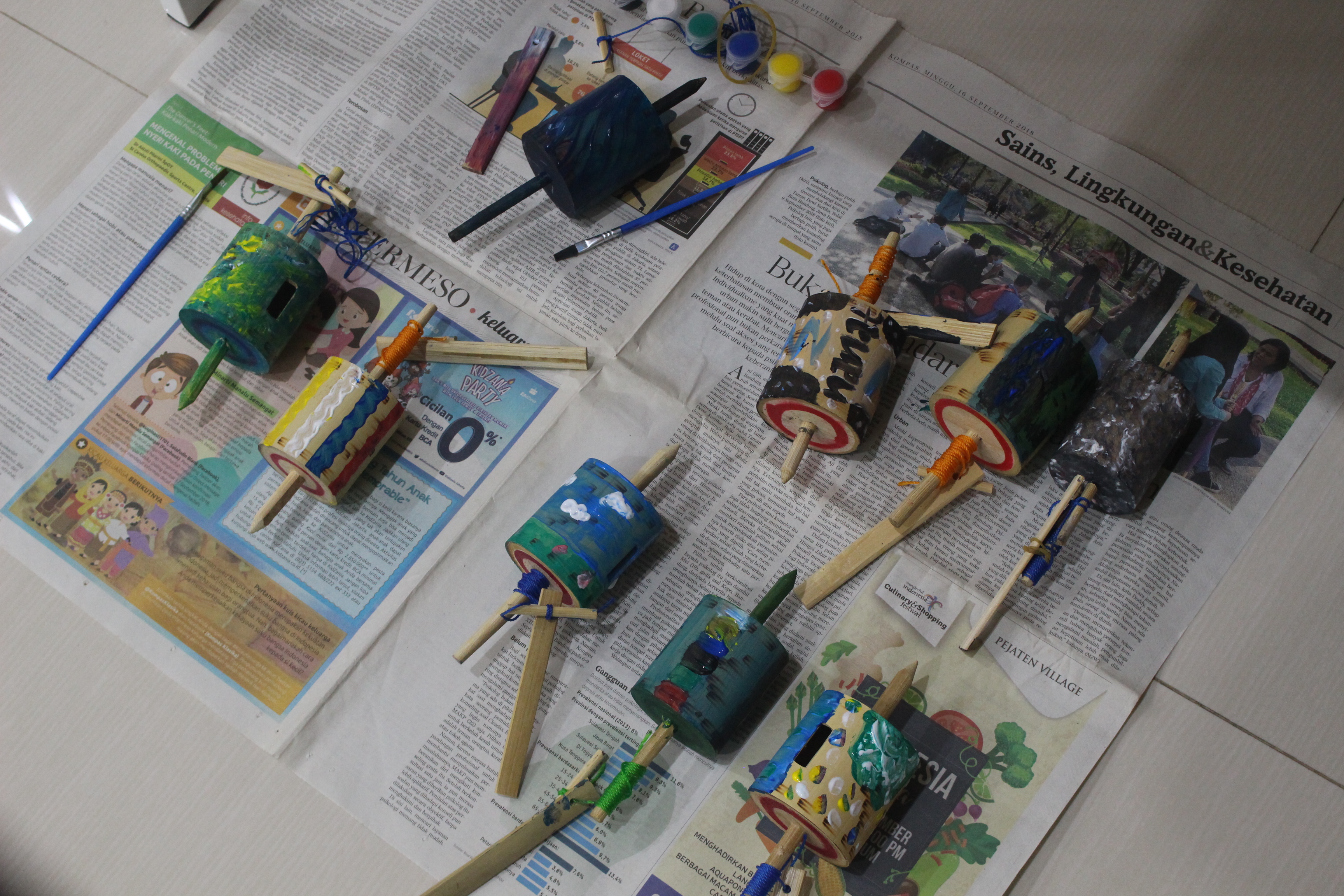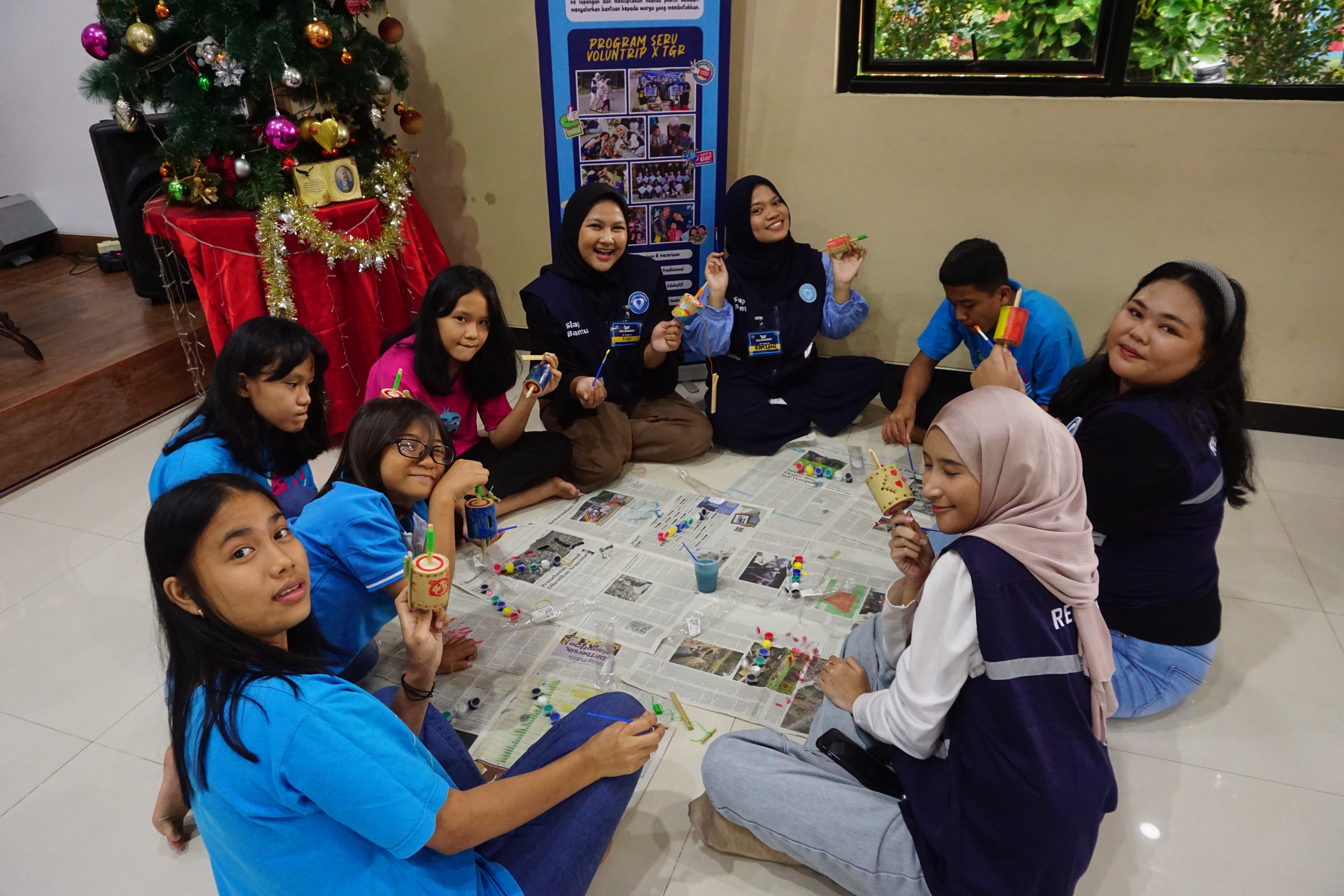 Nah, untuk keseruan selanjutnya yaitu ada empat pertanyaan kuis berhadiah yang dipandu oleh Kak Nabil dari tim TGR. Saat kegiatan tersebut, adik–adik sangat antusias untuk menjawab. Pada sesi selanjutnya, kegiatan diisi dengan melukis gasing menggunakan cat akrilik dan berfoto bersama. Adik-adik tersebut tampak gembira memperlihatkan hasil karyanya.