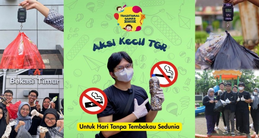 Tentunya, kejadian tersebut tidak bisa diremehkan dan diabaikan begitu saja karena dapat membahayakan kesehatan dan masa depan anak-anak Indonesia. Maka dari itu, untuk memperingati Hari Tanpa Tembakau Sedunia, Tim TGR bersama Yayasan Lentera Anak, Bank Sampah Sumber Rezeki dan Karang Taruna Pengasinan mengadakan aksi pemungutan dan penyortiran sampah puntung rokok. Aksi tersebut bertujuan sebagai bentuk peningkatan kesadaran betapa banyaknya puntung rokok yang dibuang sembarangan dan membahayakan orang-orang sekitar, terutama anak-anak.