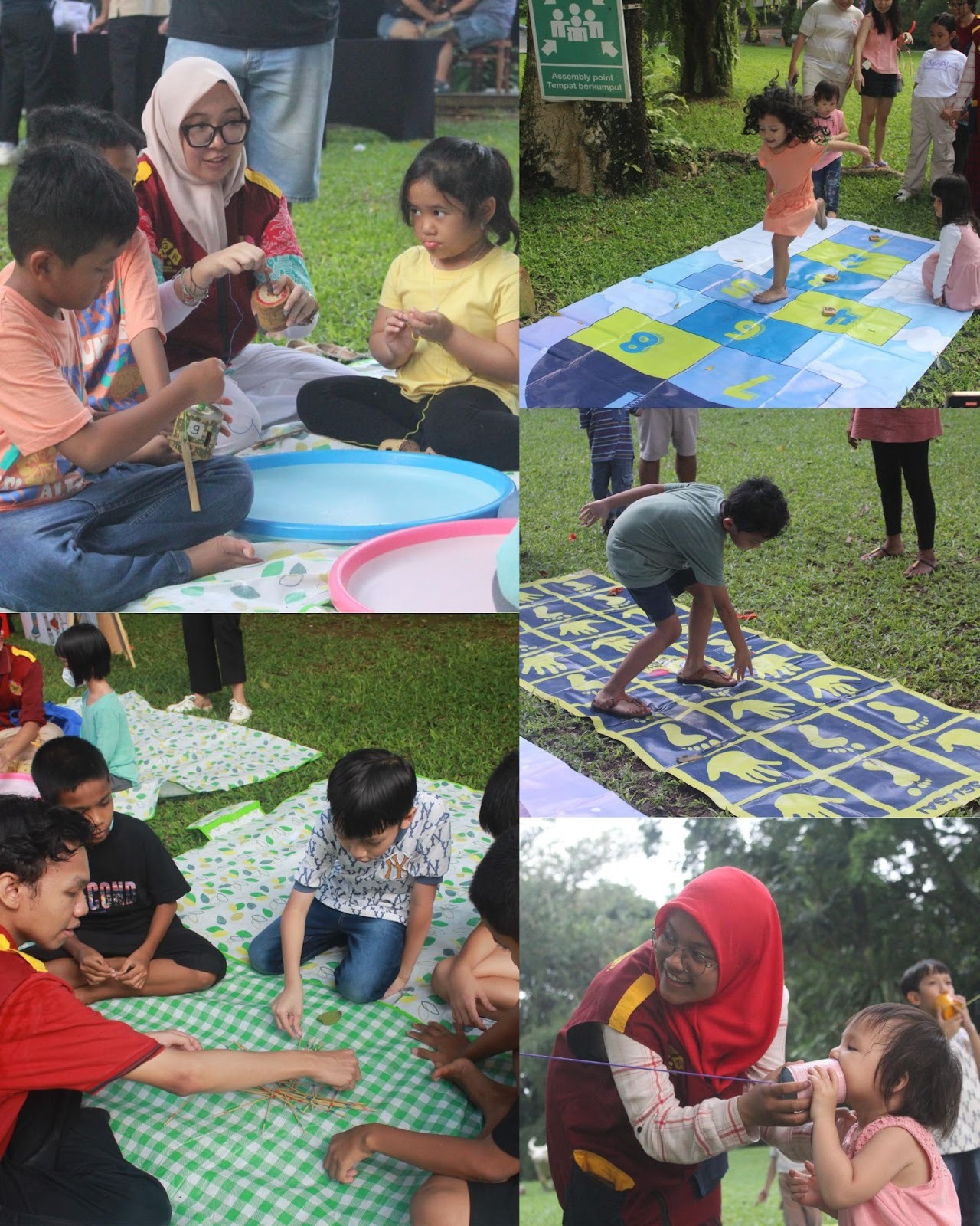Sekarang, adik-adik pengunjung akan bermain permainan tradisional dalam bentuk pos. Mereka akan bermain dan bergantian ke pos lain 5 hingga 10 menit. Berikut pos permainannya: