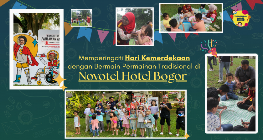Dari sekian banyak budaya di Indonesia, terdapat salah satu budaya Indonesia yang tentunya menarik dan disukai anak-anak, yaitu permainan tradisional! Nah, Hari Kemerdekaan kali ini, Tim TGR ikut andil dalam menyebarkan budaya Indonesia dengan berpartisipasi dalam acara “Agustusan” yang diselenggarakan oleh Hotel Novotel Bogor kepada adik-adik pengunjung.
