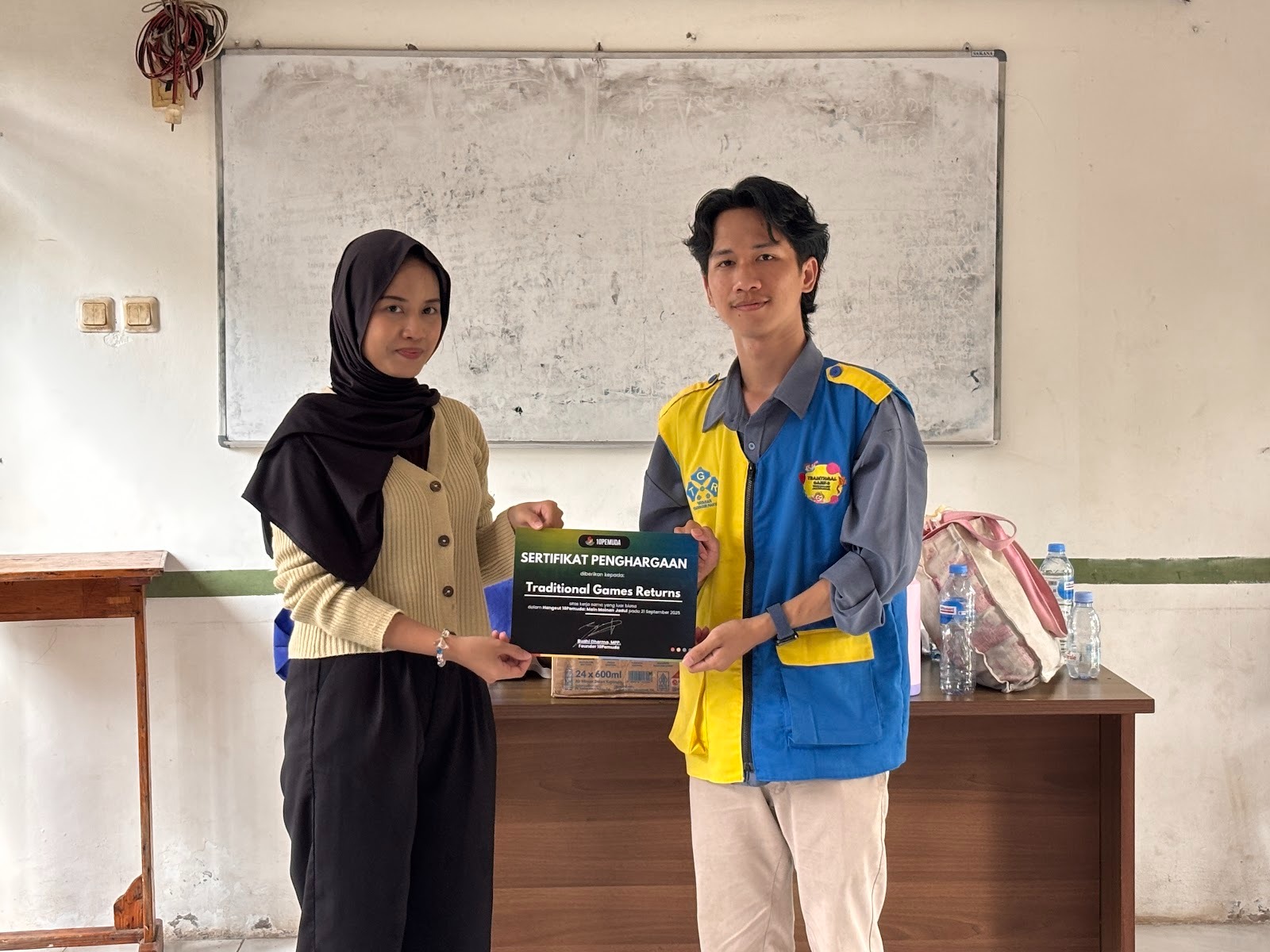 Obrolan santai saat sharing ini, jadi ruang refleksi kecil yang memperlihatkan betapa permainan tradisional masih relevan dan menyenangkan untuk semua usia. Kemudian lanjut dengan sesi dokumentasi sebagai bentuk kenang-kenangan. Sebagai penutup ada penyerahan sertifikat dari 10Pemuda kepada TGR sebagai bentuk apresiasi atas kolaborasi yang menginspirasi.