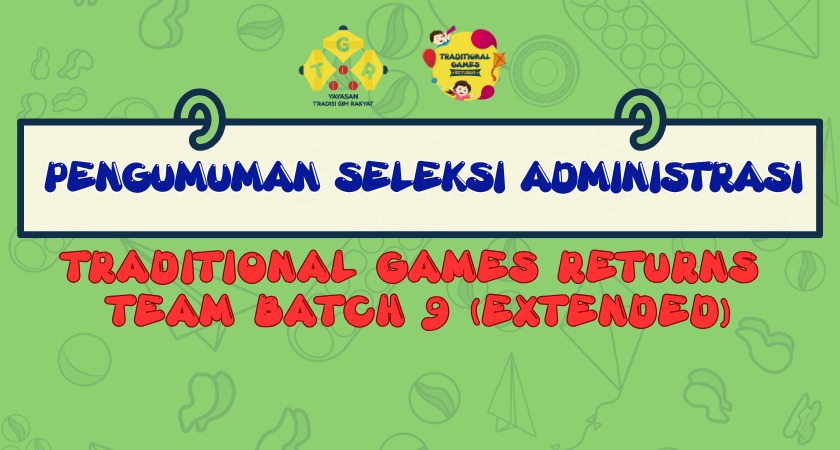 Halo Sobat TGR! Kami dari Traditional Games Returns (TGR) Team mengucapkan terima kasih atas partisipasi yang luar biasa kepada Sobat yang telah mendaftarkan diri dalam open recruitment TGR Team Batch #9 (Extended). Berdasarkan seleksi administrasi, kami umumkan daftar nama calon anggota tim yang dinyatakan lolos tahap administrasi pada masing-masing divisi. Bagi Sobat yang lolos dipersilakan untuk mengerjakan asesmen sesuai dengan ketentuan sebagai berikut: