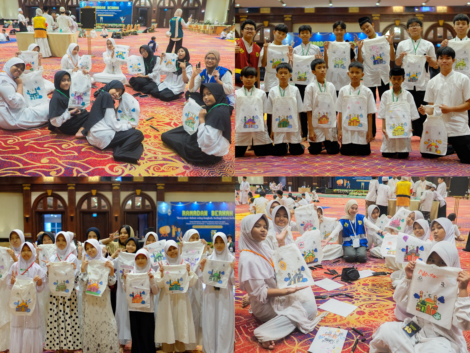 Setelah selesai berkeliling hotel, para peserta kemudian diajak menuangkan kreativitas mereka melalui kegiatan mewarnai totebag. Totebag yang dibagikan kepada setiap peserta memiliki gambar masjid yang dapat mereka hias dengan berbagai warna sesuai imajinasi masing-masing. Suasana santai dan hangat pun terasa ketika anak-anak dengan penuh semangat mewarnai totebag mereka sambil menikmati momen kebersamaan.