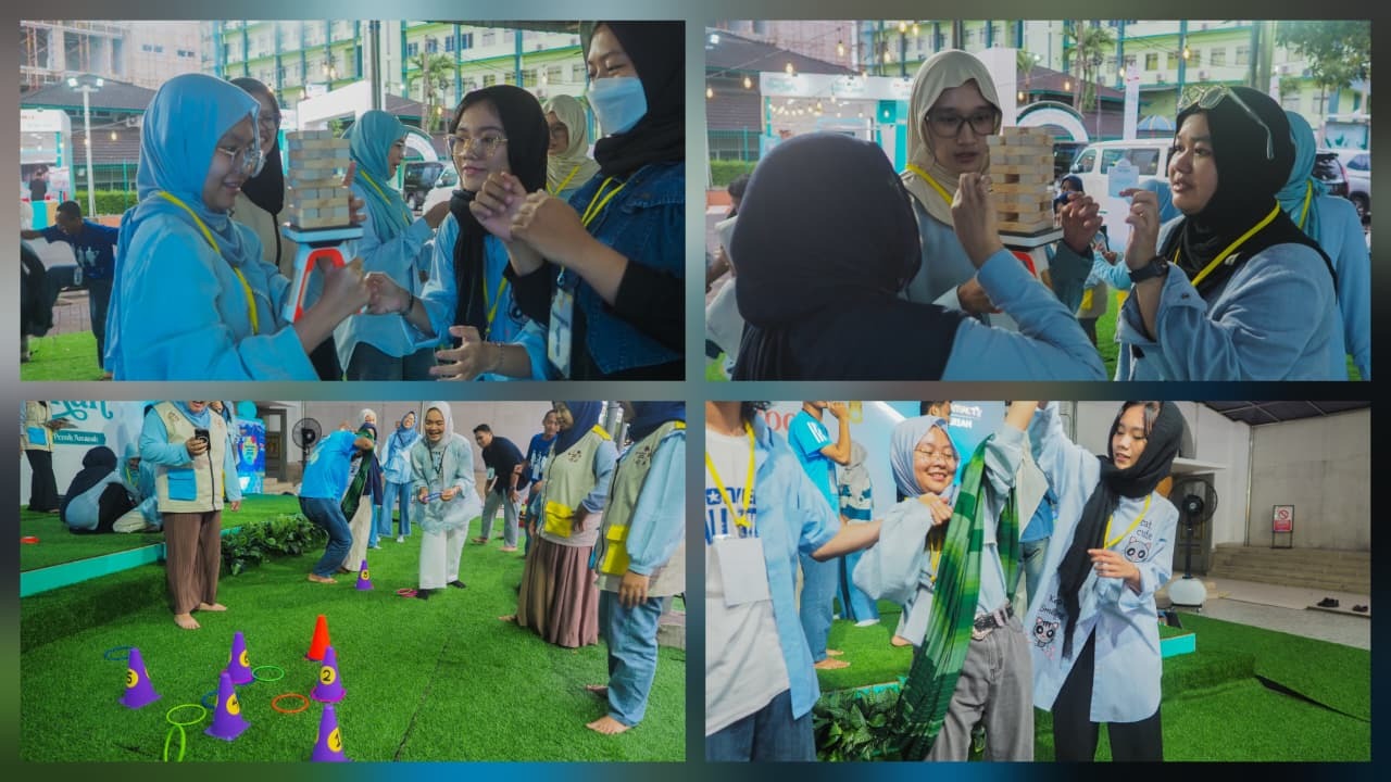 Sementara itu, permainan jenga yang menguji ketelitian dan kesabaran peserta dalam menyusun serta menarik balok tanpa membuat susunan tersebut roboh. Keseruan di sesi ini semakin terasa ketika menara jenga mulai goyah dan para peserta menunggu dengan penuh tegang apakah susunannya akan jatuh atau tidak.