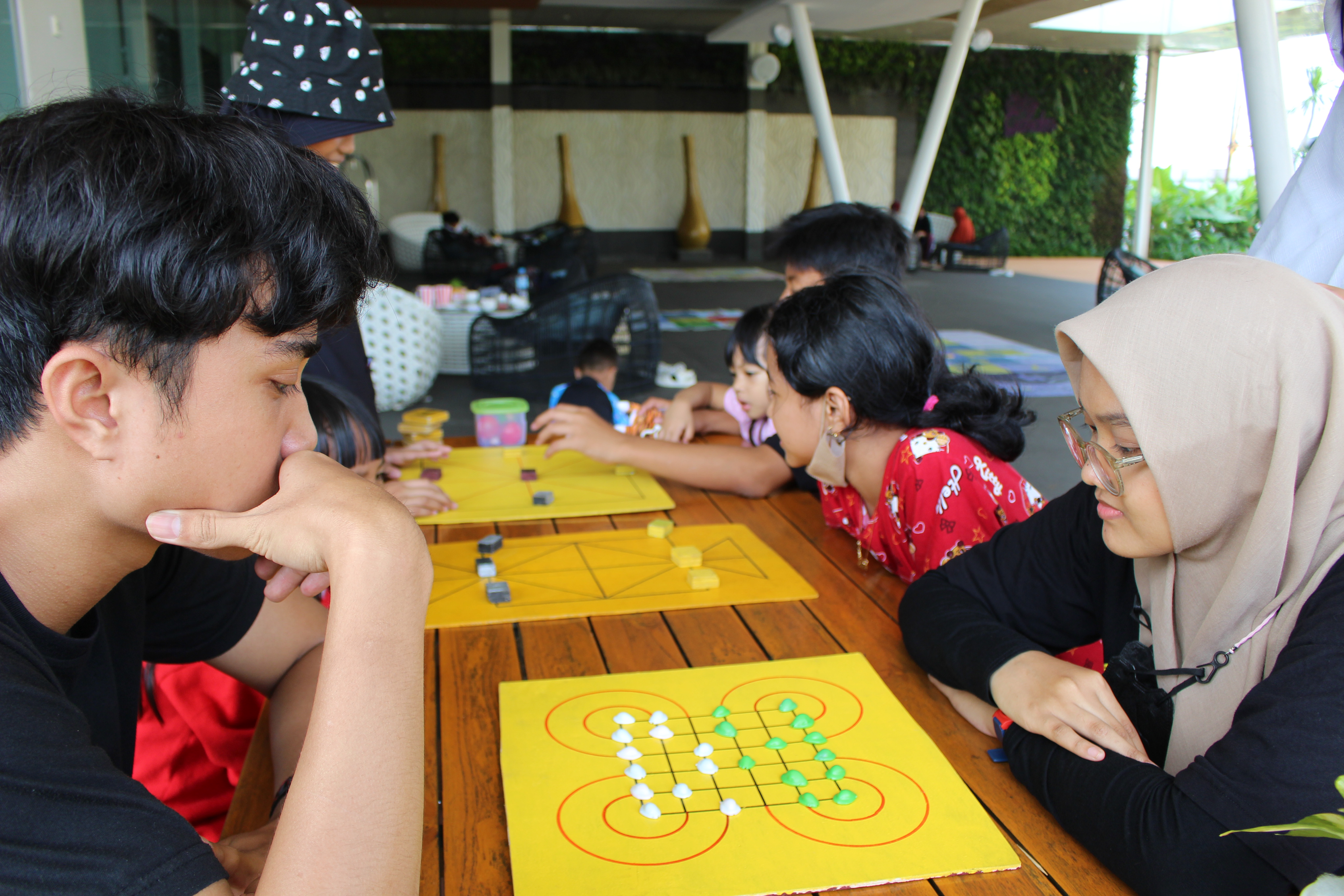 Tim TGR mengisi sesi bermain di Sky Garden yang bersebelahan dengan The Square Restaurant. Sebelum bermain, tim TGR berkenalan dengan anak-anak yang hadir bersama keluarganya. Ketika mereka mulai berkumpul, relawan TGR yang hadir dengan sigap menyiapkan beberapa permainan tradisional seperti congklak, engklek, balap karung, lenggang rotan, gasing, damdas, Surakarta boar game dan lainnya.