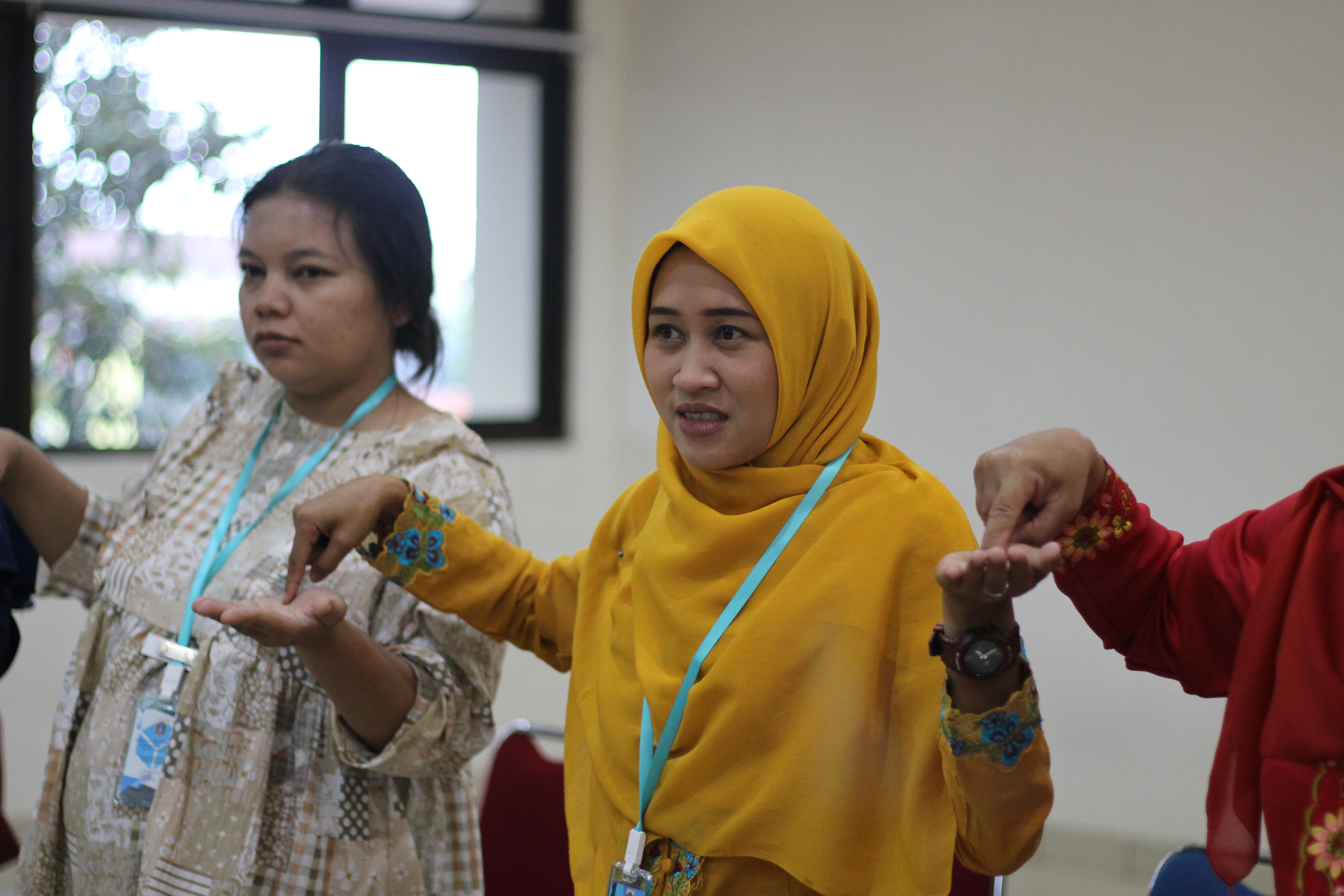 Dipandu oleh kak Aghnina, kak Intan dan kak Nabil, workshop pertama adalah pengenalan permainan tradisional tanpa alat. Mulai dari permainan cingciripit, ABC lima dasar, ular naga, domikado hingga tepuk ampar-ampar pisang. Para pengelola bergembira sambil membaur satu sama lain.