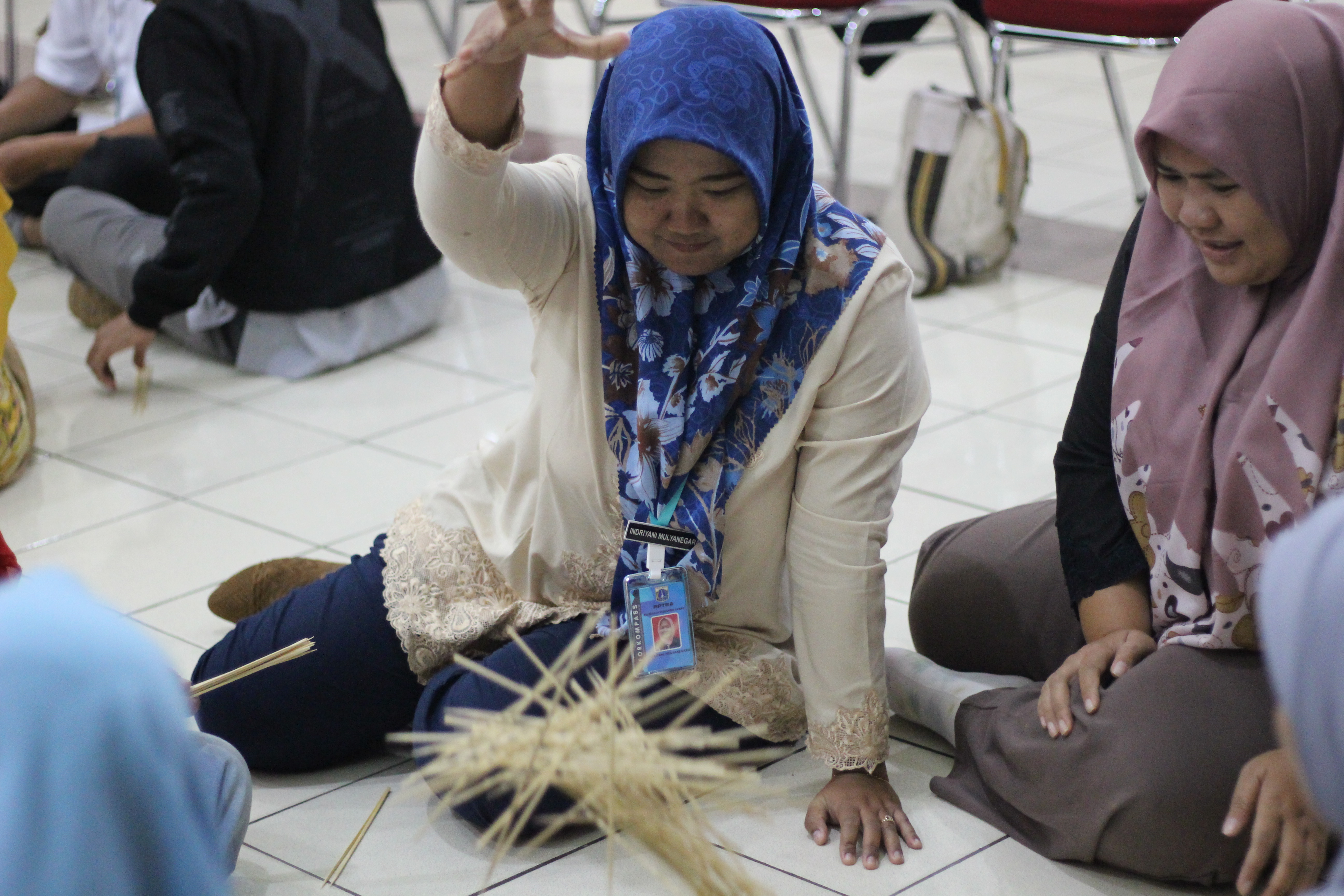 Selanjutnya para pengelola belajar memainkan keprayan atau cuthikan, yaitu permainan mengambil tusuk sate tanpa menyentuh stik lainnya. Para pengelola langsung berkonsentrasi dan berlomba mengambil tusuk sate terbanyak. Setelah itu keseruan berlanjut dengan menggambar permainan damdas 3 dan 16 batu. "Seru banget ya, main gini aja ternyata mikir keras!" ujar salah satu pengelola RPTRA.