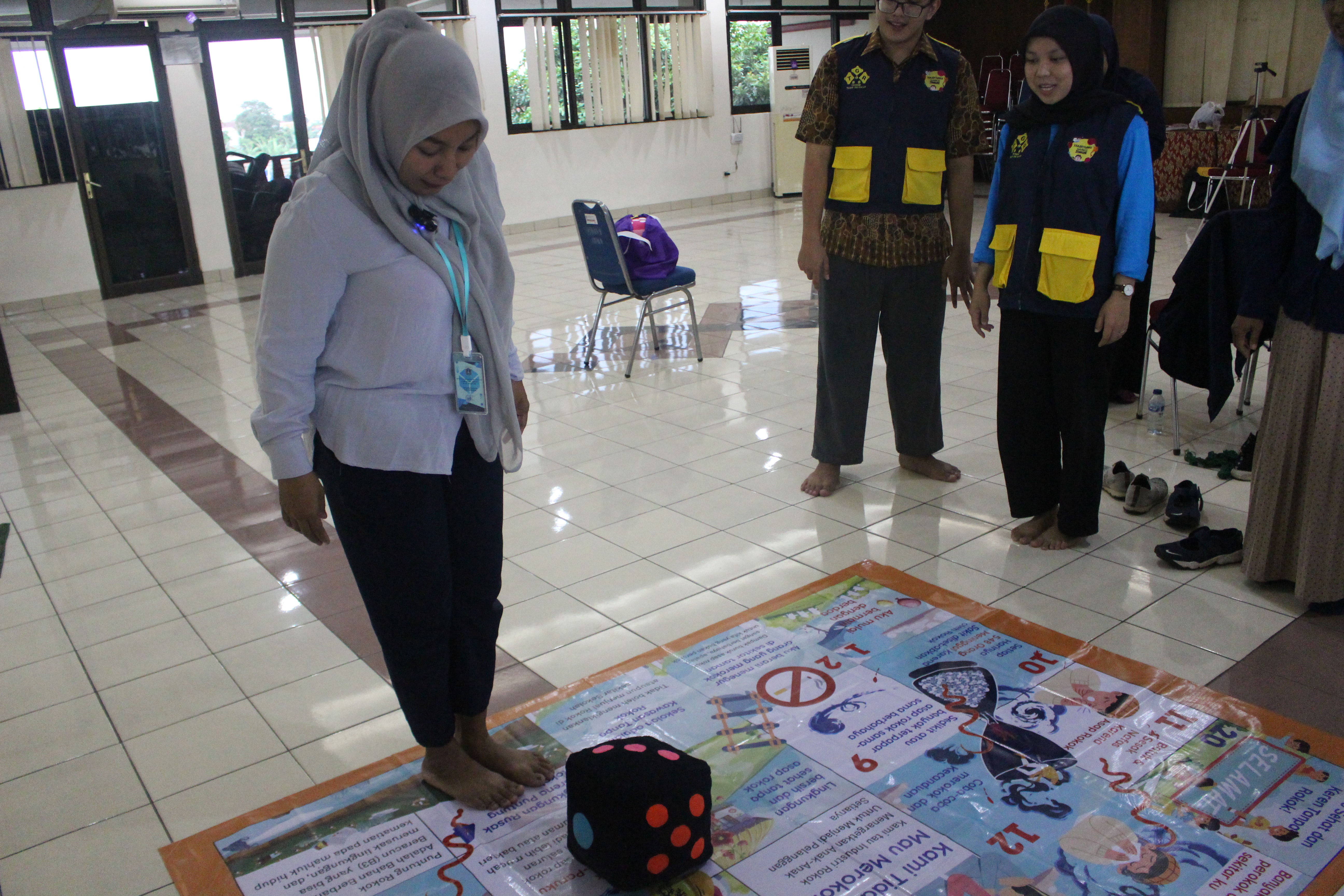 Kemudian kak Aghnina menjelaskan terkait ular tangga karya Lentera Anak dan TGR yang berisi informasi "Sehat dan Keren Tanpa Rokok!". Para pengelola langsung mencoba permainan ular tangga raksasa sambil perlahan membaca setiap kotak yang dilalui.
