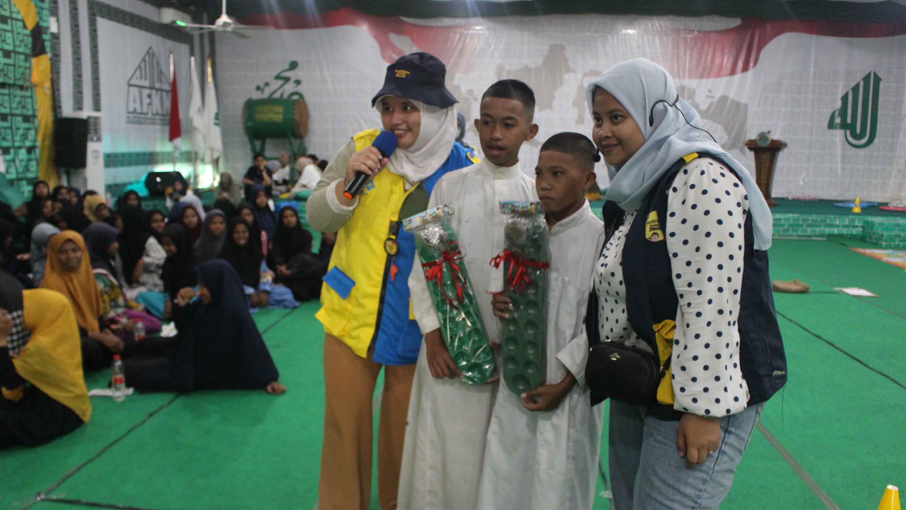 Sebelum kegiatan bermain dimulai, kegiatan diawali dengan ice breaking berupa quiz yang dipandu oleh Kak Aghnina dari tim TGR. Quiz yang ditanyakan yaitu seputar permainan tradisional dan juga lagu daerah. Santri ataupun santriwati yang berhasil menjawab quiz akan diberikan hadiah berupa satu set permainan congklak dan yoyo. Setelah quiz, mereka berkumpul dengan kelompoknya masing-masing untuk menampilkan yel-yel yang sudah dibuat sebelumnya. Meskipun ada kelompok yang masih malu-malu, tapi suasana saat itu sangatlah meriah dan ramai.