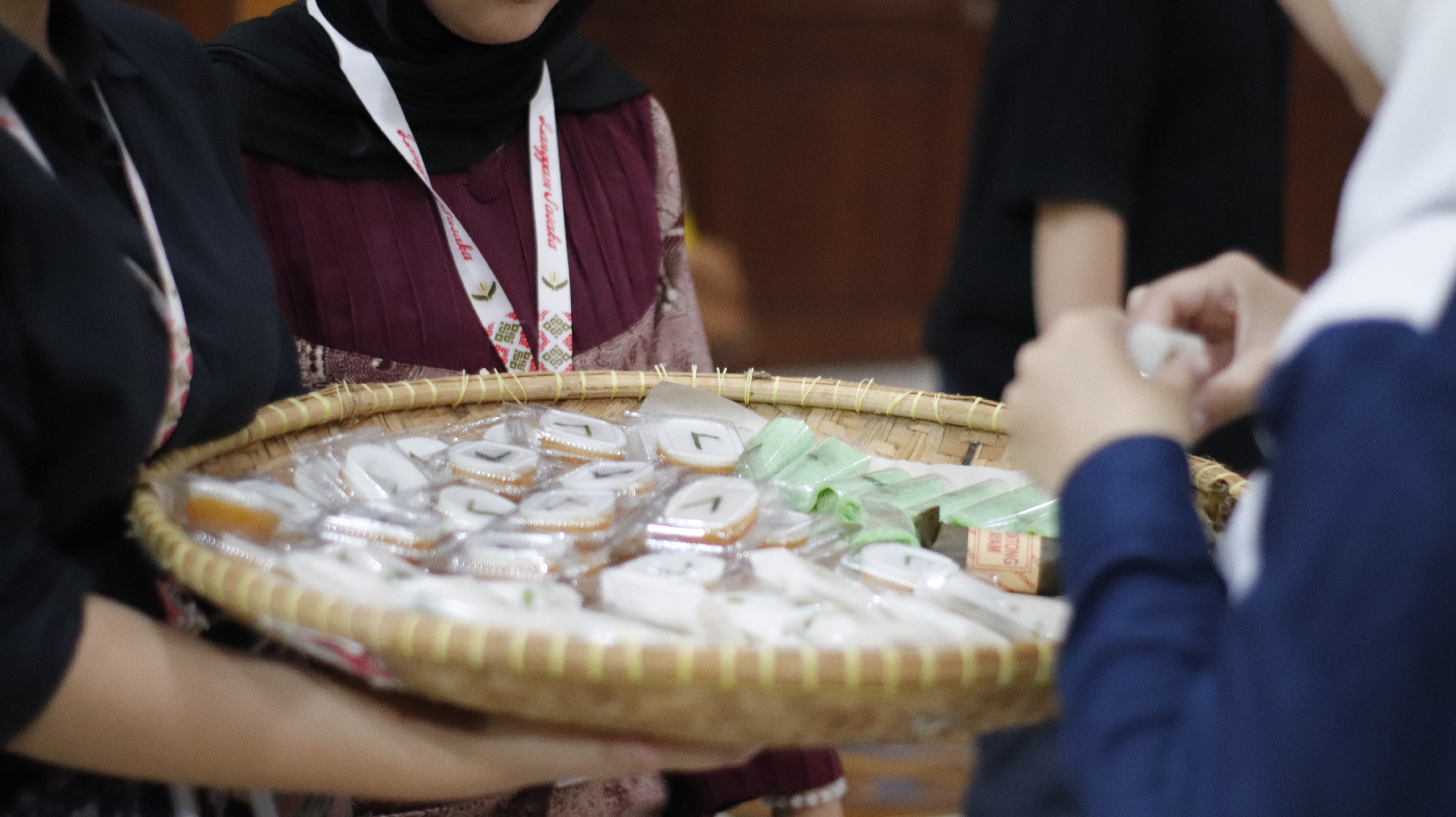Tibalah saatnya para peserta untuk beristirahat sejenak sebelum melanjutkan permainan di sesi kedua. Beristirahat selama lima menit, sambil menikmati kudapan khas Sunda. Para panitia menyediakan beragam jajanan pasar seperti dadar gulung, lemper ayam, cente manis dan talam kuning.